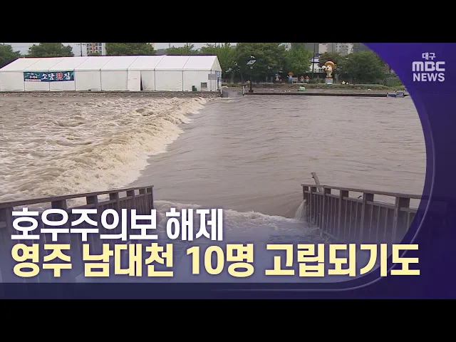 ◀앵커▶사흘간 비를 뿌렸던 정체전선이 물러가면서 경북 북부 7개 시·군에 내려진 호우주의보도 모두 해제됐습니다.수도권과 달리 우리 지역에 큰 피해는 없었지만, 일부 계곡에선 고립된 야영객이 구조되기도 했습니다.김서현 기자가 보도합니다.◀기자▶영주시 부석면 남대리.집중호우로 계곡물이 갑자기 불어나면서, 인근 ...