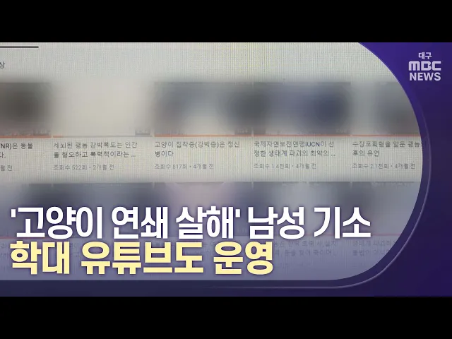 ◀앵커▶포항에서 수년 동안 길고양이를 연쇄적으로 학대하고 살해한 혐의를 받는 30대 남성이 재판에 넘겨졌습니다.그런데 이 남성이 최근 논란이 된 고양이 학대 유튜브 채널의 운영자라는 사실이 새롭게 드러났습니다.박성아 기자가 보도합니다.◀기자▶고양이 학대 동영상 10여 개를 올린 유튜브 채널입니다.고양이들이 포...