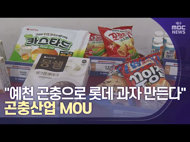◀앵커▶곤충이 미래 식량난의 대안으로 떠오르고 있죠. 경상북도가 국내에서 처음으로 롯데그룹과 함께 곤충을 원료로 과자, 에너지바 등을 개발하기로 하고 롯데중앙연구소와 협약을 맺었습니다.곤충 대량 생산을 위한 거점 단지도 예천에 조성합니다.이도은 기자가 보도합니다.◀기자▶식용 곤충의 단백질 함량은 100g당 50~...