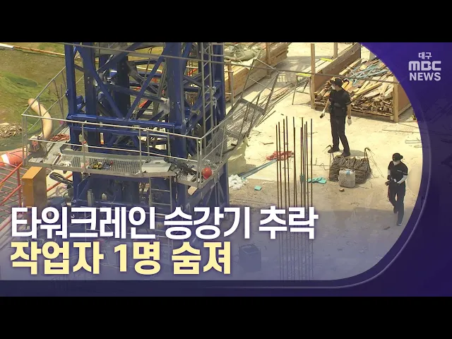 ◀앵커▶경북 포항의 한 아파트 공사현장, 타워크레인 위에서 하청업체 노동자 3명이 떨어져 1명이 숨졌습니다. 타워크레인의 작업용 승강기가 10여미터 아래로 갑자기 추락하면서 사고가 났습니다. 박성아 기자가 보도합니다. ◀기자▶경북 포항의 한 아파트 공사 현장. 20미터 높이의 타워크레인이 서 있고, 크레인을 둘러싼...