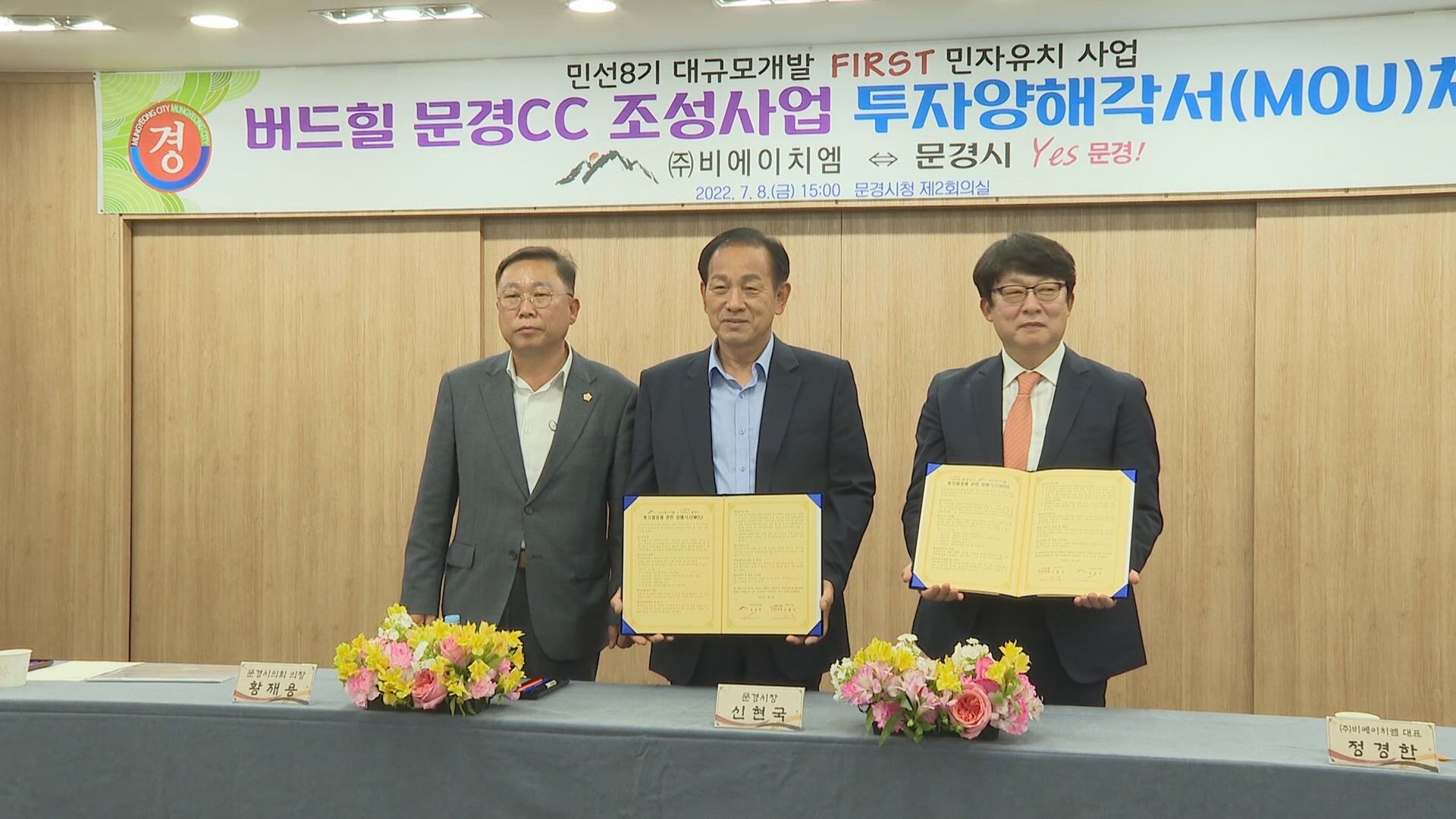 문경시가 주식회사 비에이치엠과 골프장과 숙박시설 건립 등 천억 원 투자를 약속하는 양해각서를 체결했습니다.골프장은 문경시 마성면 외어리 일원 36만 평 부지에 18홀 규모로 조성되고 골프텔과 부대시설 등이 함께 들어서며 오는 2025년 준공 예정입니다.이번 투자 양해 각서 체결은 민선 8기 문경의 첫 민자유치사업...