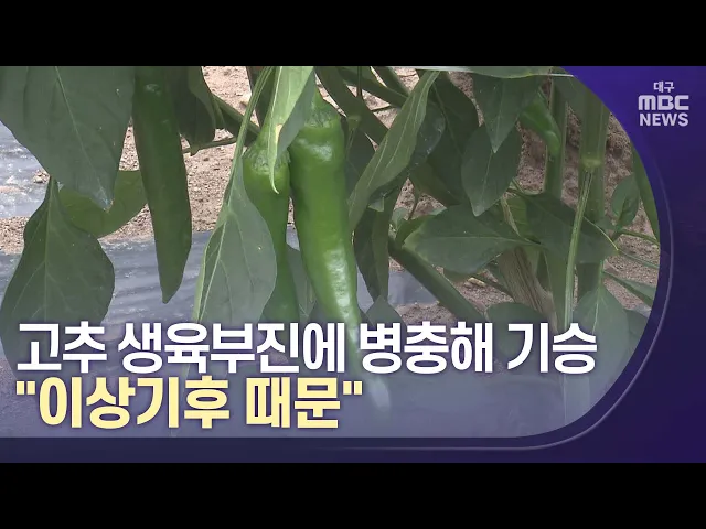 ◀앵커▶이맘때는 고추가 수확을 한 달여 앞두고 한창 자랄 시기인데요, 주산지에서는 생육 부진에 병해충까지 기승을 부리고 있습니다.따뜻했던 지난겨울에 이어 긴 가뭄까지 '이상 기후'가 주원인으로 분석됩니다. 김건엽 기자가 보도합니다.◀기자▶고추 주산지인 영양의 한 고추밭입니다.고추가 제대로 크지 못한 채 잎이 ...