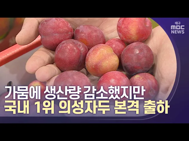 ◀앵커▶국내 자두 생산량 1위 지역이 바로 의성인데요, 의성자두가 본격적으로 출하를 시작했습니다.극심한 가뭄으로 생산량은 다소 줄었지만, 당도는 오히려 높아졌습니다.윤소영 기자입니다. ◀기자▶가지마다 빨갛게 익은 자두가 주렁주렁 매달렸습니다.탐스럽게 익은 자두를 수확하는 손길도 덩달아 바빠졌습니다.조생종인...