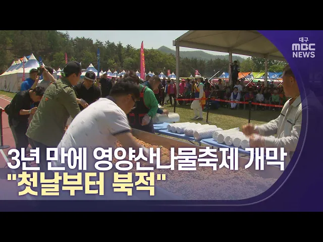 ◀앵커▶코로나 사태로 취소되거나 온라인 위주로 대폭 축소됐던 지역 축제가 속속 정상화되고 있습니다. 경북 영양에선 산나물 축제가 3년 만에 다시 열렸는데요,첫 날부터 방문객으로 인산인해를 이뤘습니다.시끌벅적한 흥정 소리 가득한 축제현장을 윤소영 기자가 다녀왔습니다. ◀기자▶곰취부터 두릅까지, 청정 산나물이 ...