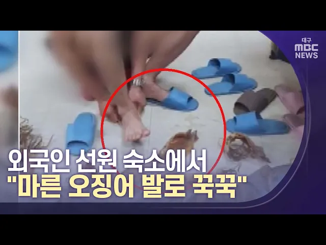 ◀앵커▶2022년 초, 영덕에서 신발을 신고 오징어를 밟아 펴는 작업 영상이 공개돼 큰 논란이 됐었죠?이번에는 외국인 선원들이 맨발로 마른 오징어를 밟아 펴는 영상이 SNS에서 퍼져 논란이 되고 있습니다.박성아 기자가 보도합니다. ◀기자▶한 외국인 남성이 오징어를 바닥에 내려놓더니 맨발로 꾹꾹 눌러 밟습니다. 바닥에...
