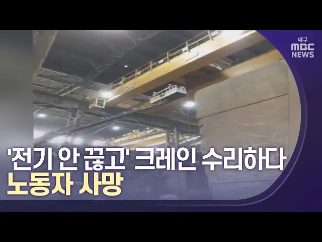 ◀앵커▶ 노동자의 사망 사고가 끊이지 않고 있습니다. 동국제강 포항 공장의 고철 야적장에서 천장 크레인을 수리하던 30대 하청업체 노동자가 안전벨트 줄에 감겨 숨졌습니다.수리 작업을 할 경우에는 반드시 크레인 가동을 중단해야 했지만, 이번에도 규정은 지켜지지 않았습니다.배현정 기자가 취재했습니다.◀기자▶ 어제 ...