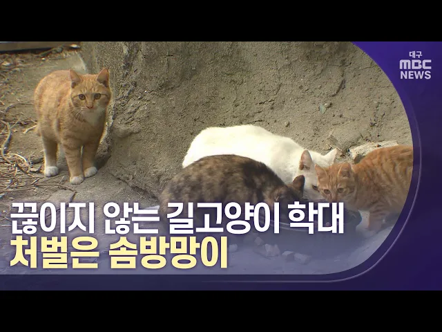 ◀앵커▶경북 포항에서 20대 남성이 길고양이를 양어장에 가둬 잔혹하게 학대한 사건 전해드렸는데요.동물 학대 범죄는 반복되고 있지만 동물권에 대한 사회적 인식 부족에 더해 사법 당국의 솜방망이 처벌도 문제라는 지적이 제기됩니다.박성아 기자가 보도합니다.◀기자▶버려진 양어장에 길고양이들을 가둬 놓고 잔혹하게 살...