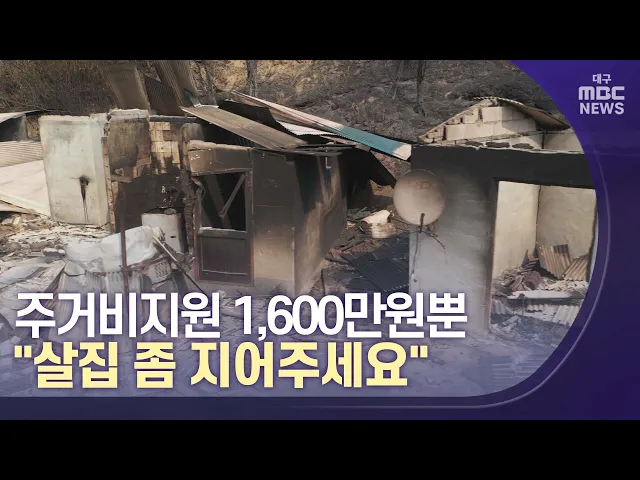 ◀앵커▶이번 울진 삼척 산불로 울진에서만 주민 300여가구가 보금자리를 잃었습니다. 앞으로 살 집이 절실합니다만, 정부 보상금은 최대 1600만 원에 불과합니다. 현재까지 국민 성금 4백억 원이 모였는데, 관련 지침을 바꿔서라도 주택 복구에 전액 지원해 달라는 목소리가 커지고 있습니다. 장미쁨 기자가 보도합니다. ◀...