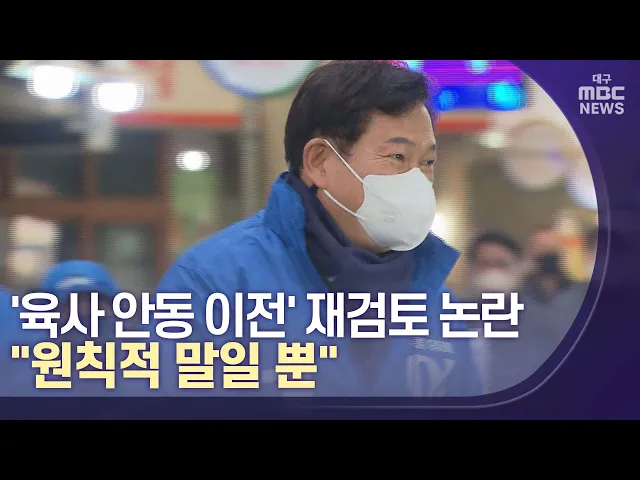◀앵커▶ 이재명 더불어민주당 대선 후보가 발표한 육군사관학교의 안동 이전 공약을 두고 말들이 많습니다. 안동에서는 육사 유치 움직임이 시민 사회로 번지고 있는데, 최근 송영길 민주당 대표는 충청 지역을 방문해서 육사 안동 이전 재검토 가능성을 내비쳤습니다.오늘 안동을 방문한 송 대표는 이에 대해 명확한 답을 ...