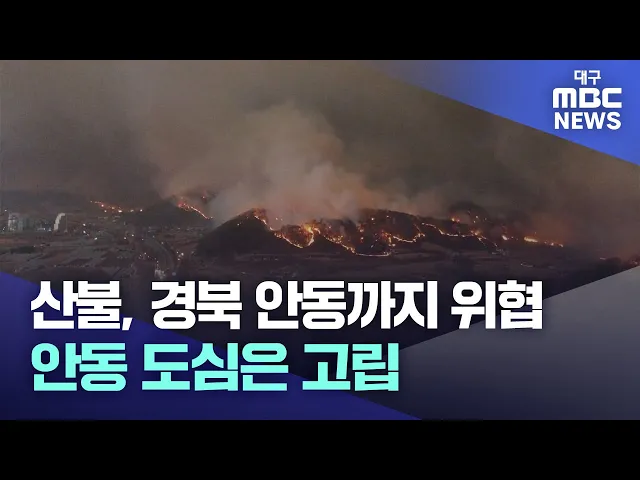 ◀앵커▶경북 의성에서 발생한 산불이 3월 25일 오후 강풍을 타고 순식간에 안동시내 앞까지 도달했습니다.안동시는 산불이 보이면 누구나 피하라는 긴급 대피령을 내렸습니다. 고속도로와 철도, 국도 등 남쪽에서 안동으로 들어오는 교통은 대부분 끊겨 안동은 초유의 반 고립상태가 됐습니다. 홍석준 기자입니다.◀기자▶경북...
