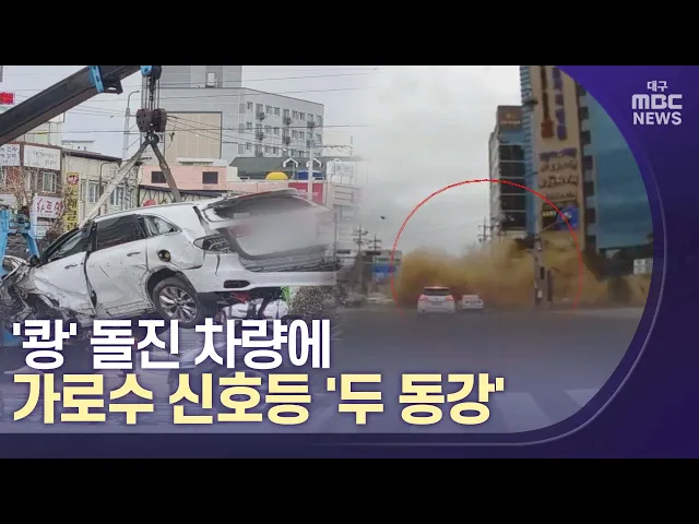 '쾅' 돌진 차량에 가로수 신호등 '두 동강'