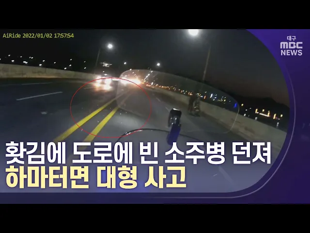 ◀앵커▶얼마 전, 안동 영호대교에서 한 남성이 도로에 빈 소주병을 마구 집어 던져 달려오던 오토바이에 유리 파편이 튀는 사고가 있었습니다.통행량이 많은 곳이어서 하마터면 대형사고로 이어질 뻔한 상황이었습니다.경찰이 사고 12일 만에 이 남성을 붙잡았는데, 옆 차선 승용차가 갑자기 끼어들어 화가 나서, 이 같은 일...