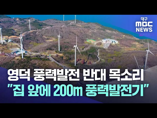 ◀앵커▶경북 영덕군은 국내 최대 규모의 풍력 발전단지 가운데 하나지만 사업 예정지 곳곳에서 주민들의 반대 민원이 끊이지 않고 있습니다.마을 바로 앞에 높이 200미터의 초대형 풍력발전기가 무더기로 들어서는 곳도 있다 보니, 무리한 사업 추진을 중단하라는 목소리가 커지고 있습니다.장성훈 기자가 보도합니다.◀기자▶...