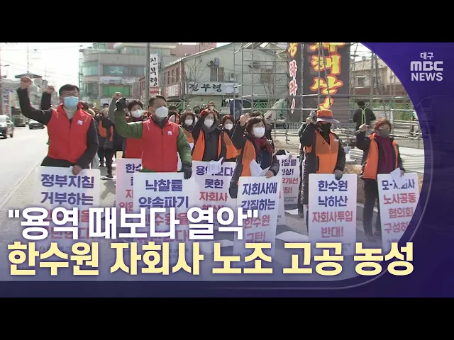 ◀앵커▶한국수력원자력에서 시설관리 담당 노동자들이 고공 농성에 돌입했습니다.2년 전 정규직 전환 대신 자회사 소속이 된 노동자들인데요, 이들은 한수원이 자회사 설립 당시 내건 약속을 지키지 않아 비정규직 시절보다 더 열악한 환경에 놓였다며, 처우 개선과 직고용을 요구하고 있습니다.박성아 기자가 보도합니다.◀...