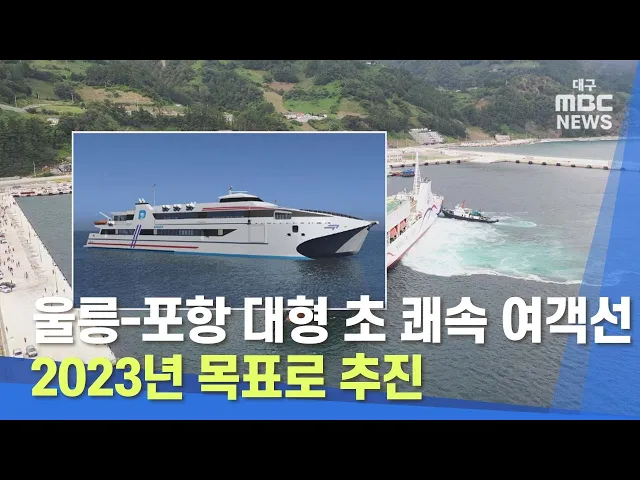 울릉과 포항을 오가는 대형 초 쾌속 여객선이 오는 2023년 투입을 목표로 추진됩니다.울릉군은 대저건설과 승객 970명과 일반화물 25톤을 실을 수 있는 2천 4백 톤급 여객선의 건조 계약을 체결했다고 밝혔습니다.군은 이 여객선이 투입되면 울릉-포항 항로를 3시간 이내에 오갈 수 있을 것으로 기대한다고 덧붙였습니다.