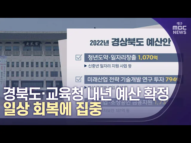◀앵커▶경상북도의회가 경상북도와 경북교육청의 내년 예산을 최종 확정했습니다.코로나 사태 장기화로 인한 지역 경제 회복과 교육 공백 해소에 초점이 맞춰졌는데요, 경북은 처음으로 11조 원대 예산 시대를 열었고 경북교육청도 올해보다 7천 억이 더 늘어났습니다.이도은 기자 ◀이도은 기자▶경북도의회가 본회의를 열어 ...
