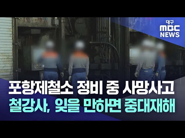 ◀앵커▶포스코 포항제철소에서 설비 정비를 하던 40대 자회사 직원이 기계에 끼여 숨지는 사고가 났습니다.지난주 현대제철에 이은 사망사고인데, 중대재해를 예방하자는 전방위적인 노력에도 불구하고 사고가 끊이지 않고 있습니다.김기영 기잡니다. ◀기자▶3월 21일 오전 9시쯤 포스코 포항제철소 스테인리스 냉연공장의 코...