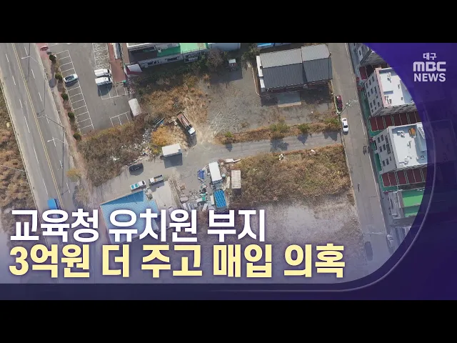 ◀앵커▶포항시 북구 양덕동에 지어질 공립 '장량 유치원' 부지 선정과 관련해 경찰이 경북도 교육청을 압수 수색했습니다.불과 3개월 전 3.3 제곱 미터에 2백만 원 대에 거래됐던 땅을 경북도 교육청이 3백 여 만원에 사들였는데, 경찰은 이 수상한 거래에 주목하고 있습니다.배현정 기자가 보도합니다.◀배현정 기자▶포항시 ...