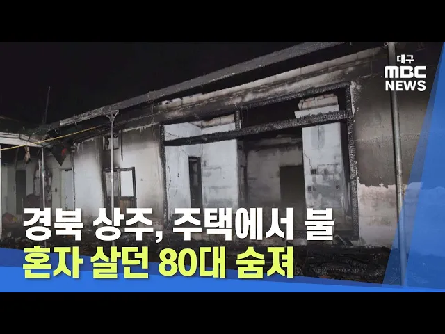 어제 저녁 8시 10분쯤 경북 상주시 화남면 주택에서 불이 나 혼자 살던 82살 노인이 숨지고 주택 1채가 불에 모두 탔습니다. 119구조대가 화재 현장에 도착했을 때는 이미 불로 집 전체가 주저앉아 있었고, 숨진 노인은 미처 대피하지 못한 것으로 전해졌습니다. 소방 당국은 1시간 20여 분 만에 불을 끄고 정확한 화재 원...