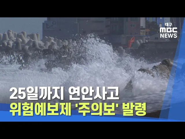 포항해양경찰서는 동해상에 강한 바람과 함께 높은 파도가 예상된다며 오는 25일까지 연안사고 위험예보제 '주의보'를 발령했습니다.특히 해경은 "해안 저지대나 방파제에는 너울성 파도로 인한 안전사고 발생 가능성이 높다"며 "방파제나 갯바위 출입을 자제하고 안전요원의 통제에 적극 협조하여 줄 것"을 거듭 강조했습...