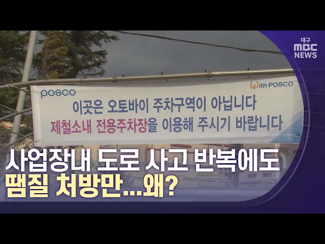 ◀앵커▶포스코 포항제철소를 비롯한 많은 사업장내 도로에서 사고가 끊이지 않고 있다고 얼마전 보도해 드렸는데요,왜 이렇게 사고가 반복되고 있고 사고를 막을 수 있는 실질적인 대책은 없는지 박성아 기자가 취재 했습니다.◀박성아 기자▶포스코 포항제철소 문 앞에 자전거와 오토바이가 가득 세워져 있습니다.주차 구역이...