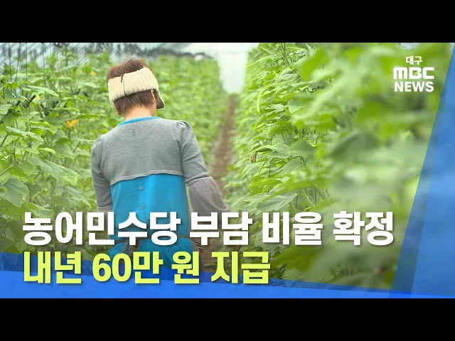 내년부터 경북지역 농어민에게 가구당 60만 원의 수당이 지급되는 가운데 경상북도가 40%, 시군이 60%를 부담하기로 확정했습니다.전체 예산 1,389억 원 가운데 경상북도가 40%인 555억 원을 부담하고 시군은 나머지 834억, 60%를 부담합니다. 지급 대상은 도내 농어민 가구의 85%인 23만여 가구로 수당은 상·하반기에 한 ...