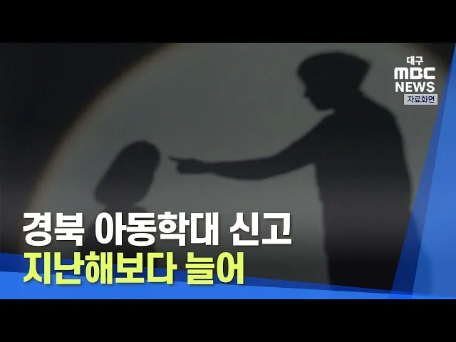 올해 경북에서 발생한 아동학대 신고 건수가 지난해보다 늘었습니다. 경상북도와 아동보호전문기관의 조사 결과 올해 들어 지난 9월까지 접수된 아동학대 신고 건수는 2,215건으로 지난 한 해 신고 건수 1,987건을 넘어섰습니다. 경상북도는 아동학대에 대한 사회적 관심이 높아지면서 신고가 증가한 것으로 분석했습니다.