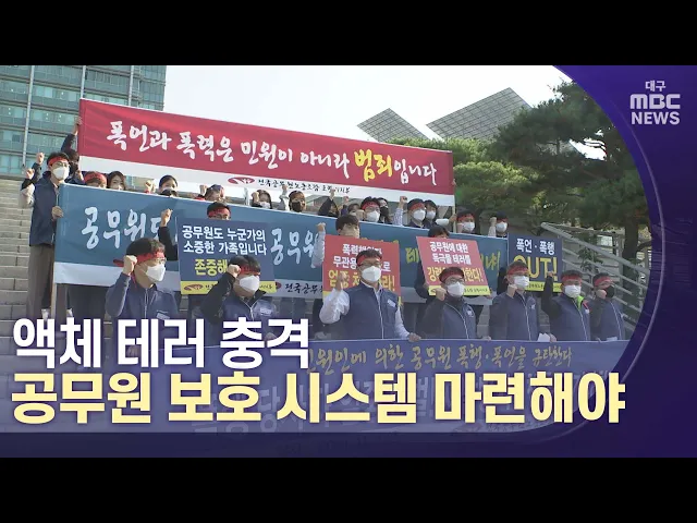 ◀앵커▶지난주 금요일 포항시청 공무원이 제초제로 추정되는 액체 테러를 당했습니다.이번 사건을 계기로 악성 민원인을 상대하는 공무원에 대한 보호 시스템을 강화해야 한다는 목소리가 커지고 있습니다.배현정 기자가 보도합니다.◀배현정 기자▶지난 29일 포항시청에서 발생한 발생한 액체 테러 사건은 놀라움 그 자체였습...