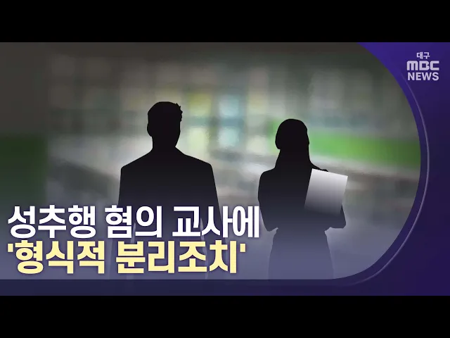 ◀앵커▶안동의 한 중학교 소속의 남자 영양교사가 행정실 여직원을 성추행하고 유사강간한 혐의로 검찰에 송치돼 수사를 받고 있습니다.여직원이 학교에 피해 사실을 알린 지 6개월이나 지났지만, 학교 측은 아직까지도 제대로 된 분리 조치조차 하지 않고 있습니다.김서현 기자의 보도입니다.◀김서현 기자▶안동의 한 여자 ...