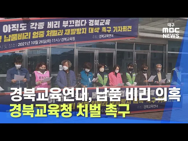 경북교육청의 마스크 보관팩 납품 과정에서 업체와 교육청 직원 간 알선 대가가 오갔다는 최근 의혹에 대해, 경북교육연대가 엄중한 처벌과 재발방지 대책을 촉구했습니다.또 경북교육청의 책소독기와 생존수영 VR체험기 납품 과정에서도, 교육청이 수요조사 없이 사업을 추진하고 학교에 강제 배당한다는 의혹이 있으며 수...
