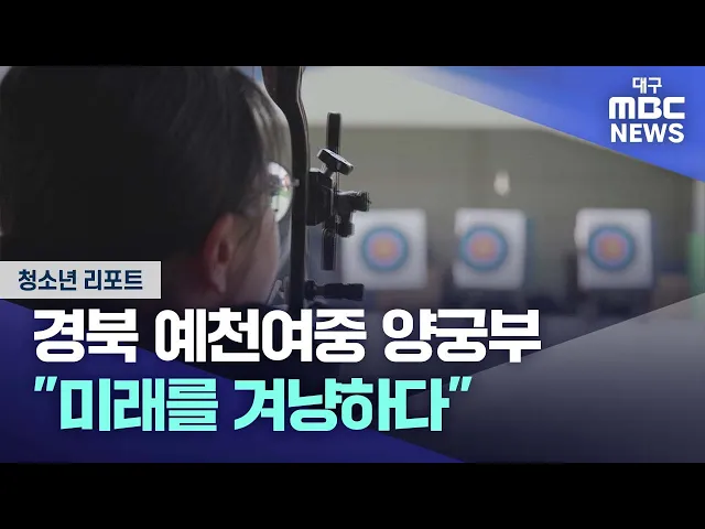 ◀앵커▶경북 예천은 김진호, 김제덕 등 뛰어난 양궁 선수들을 배출하며 양궁의 메카로 거듭나고 있습니다.그 뒤를 잇고자 예천의 양궁 유망주들이 구슬땀을 흘리고 있는데요.예천여중 양궁부 훈련 현장을 김지율 MBC 청소년기자가 전합니다.◀기자▶선수들의 손끝에서 화살이 과녁으로 정확하게 날아갑니다.경북 예천여자중학...