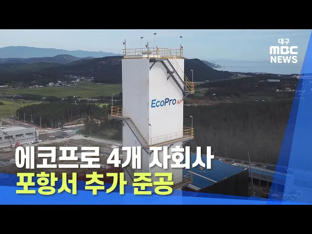 경상북도와 포항시는 오늘(21일) 영일만4 일반산업단지에서 '에코배터리 포항캠퍼스’ 준공식을 가졌습니다.'에코배터리 포항캠퍼스'는 포항에 1조 7천억 원을 투자해 배터리 양극재 전 주기 시스템을 구축하는 프로젝트입니다.에코프로는 양극재를 생산하는 에코프로BM과 EM에 이어 이 날 EM, AP, 이노베이션, CnG(씨앤지)...