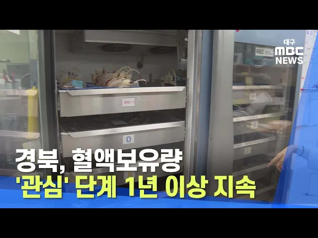 코로나19 장기화로 헌혈자가 급감해 경북에도 혈액 공급 비상이 걸렸습니다.경북의 월평균 혈액 보유량은 올해 1월엔 3.6일, 9월엔 3.5일로 한 번도 4일을 넘기지 못했습니다.적정 혈액 보유량은 5일 이상 확보돼야 하는데 경북에서는 혈액 보유량이 5일분 미만인 '관심' 단계가 1년 이상 지속하고 있습니다.혈액 수급 위기...