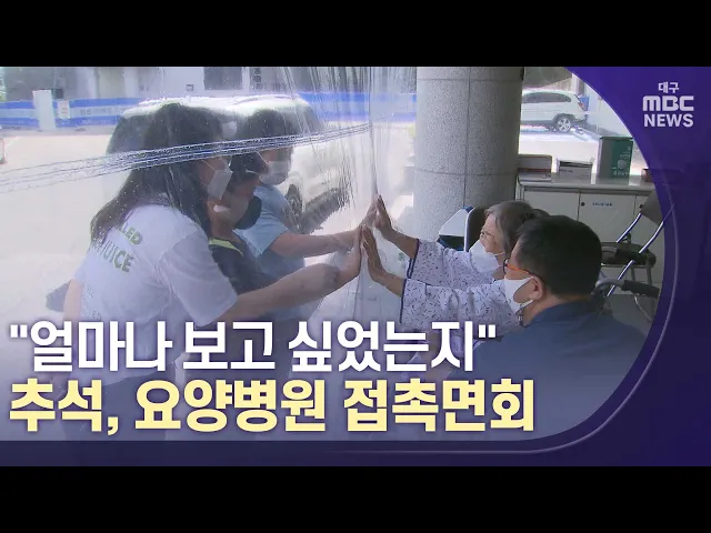 ◀앵커▶추석을 맞아 오는 26일까지 요양시설에서의 접촉면회가 허용되는데요.오랜만에 부모님 손을 직접 잡아드리며 눈시울이 붉어지기도 했고, 백신 접종이 끝나지 않아서, 비대면 면회로 안부를 물으며 아쉬움을 달래는 가족도 있었습니다.김서현 기자입니다◀김서현 기자▶추석 연휴, 안동의 한 요양병원.추석 전후로 2주 ...