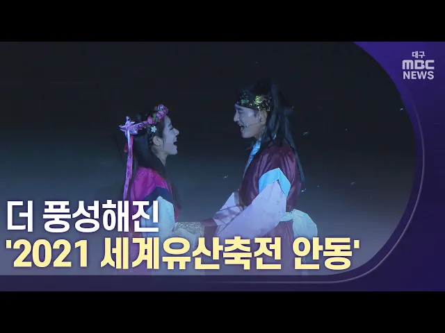 ◀앵커▶올해 2회째인 '세계유산축전 안동'은 안동이 보유한 세계유산들의 가치와 의미를 보다 많은 이들이 누릴 수 있도록 공연과 전시, 체험 행사로 문턱을 낮췄는데요.올해는 야간 프로그램을 대폭 늘렸고, 러시아 발레단과 협연한 뮤지컬을 선보이는 등 공연과 전시 완성도를 한층 높였습니다.엄지원 기자◀엄지원 기자▶세...