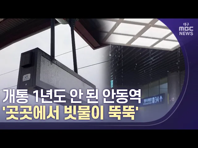 ◀앵커▶임시 개통한 지 1년도 안 된 신 안동역에서, 비가 오면 물이 새는 누수 현장이 곳곳에서 나타나고 있습니다.운영사인 국가철도공단과 시공사는 아직 공사가 끝나지 않은 임시 개통역이기 때문에 계속 보수를 하고 있다고 해명했습니다.김서현 기자.◀김서현 기자▶안동역 중앙선. 기차 승강장의 기둥을 타고 바닥으로 ...