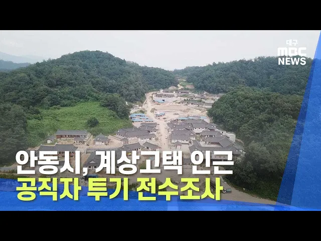 안동시가 3대 문화권 사업장의 배후 관광단지로 추진 중인 도산휴양관광지구, 예안면 부포리 계상고택 일대에 대한 부동산 투기 전수조사를 진행하기로 했습니다.안동시의회 시정질의에서 이경란 의원은 "이 지역에 전·현직 국회의원과 시·도의원 등 유력인사의 부동산 매입 의혹이 무성하다"라며 안동시에 조사를 요청했습...