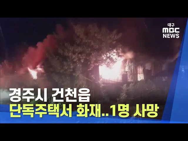 오늘(8일) 오전 2시 30분쯤 경주시 건천읍의 한 단독주택에서 불이 나 세 시간 만에 꺼졌습니다.집주인 65살 A씨가 숨진 채 발견됐고, 9백 50만 원 어치의 재산 피해가 발생했습니다. 경찰과 소방당국은 주택 출입구에서 불이 시작된 것으로 보고 정확한 원인을 조사하고 있습니다.