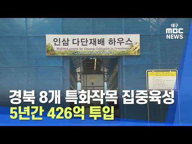 ◀앵커▶복숭아, 참외, 산약, 오미자, 인삼 등 8개가 경북의 특화작목으로 선정돼 집중 육성됩니다. 앞으로 2025년까지 426억 원이 투입돼 우량 신품종 육성에서부터 내수·수출 확대를 위한 가공·유통시스템 구축까지 다각적인 지원사업이 진행됩니다.김건엽 기자의 보도입니다.◀김건엽 기자▶인삼 재배농가의 가장 큰 고민은...