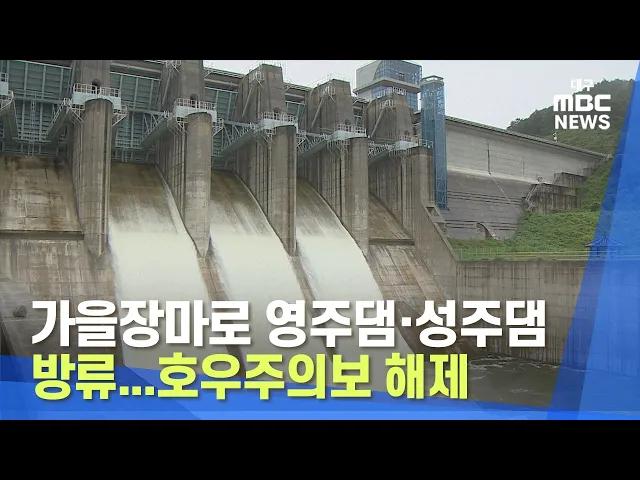 ◀앵커▶이맘때 약해져야 할 북태평양 고기압이 예년보다 더 크게 확장해 전국적으로 가을 장마가 거센데요, 오늘도 경북 북부지역에 최고 100mm의 비가 내렸습니다.다행히 큰 피해는 보고되지 않고 있는데요, 다만 계속된 비로 물이 차면서 성덕댐에 이어 영주댐이 방류를 시작했습니다.김서현 기자의 보도입니다.◀김서현 기...