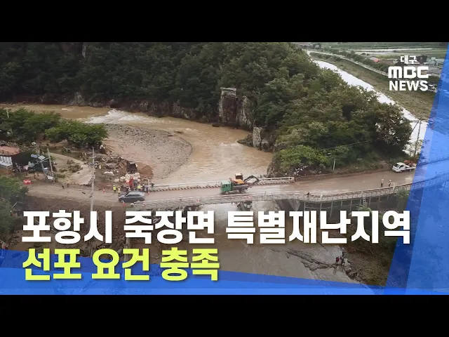 포항시 죽장면의 집중호우 피해 금액이 특별재난지역 선포 기준을 웃도는 것으로 집계되고 있습니다.포항시에 따르면 지난달 24일 이후 일주일 간 죽장면 일원의 수해 피해액은 45억 5천만원으로 잠정 집계됐습니다.유형별로는 도로와 다리, 하천 등 공공시설이 100여 건에 35억 3천만원, 주택 파손과 침수, 농경지 피해 등...
