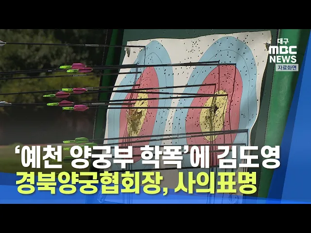 예천의 한 중학교 양궁부에서 발생한 학교폭력과 관련해 경북체육회가 진상조사단을 꾸려 조사하고 있는 가운데, 경북양궁협회 김도영 회장이 지난 27일 사의를 표명했습니다.사표는 대한양궁협회와 대한체육회의 절차에 따라 처리될 예정이며, 협회는 당분간 수석 부회장 체제로 운영됩니다.경북양궁협회는 예천 양궁부 ...