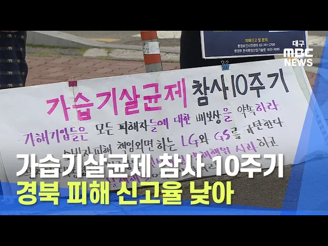 ◀앵커▶영유아와 산모들의 원인을 알 수 없는 폐 손상, 정부 조사 결과 가습기 살균제가 문제였다고 밝혀진 게 10년 전 내일이었습니다.아직도 가해 기업 처벌과 피해자 구제가 제대로 이뤄지지 않았는데요, 경북에서 피해를 신고한 사람은 300명이 안되지만, 추정 피해자는 4만 명이고, 지금도 피해 신고는 계속되고 있습니...