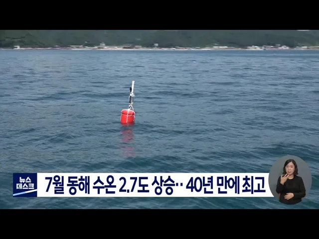 지난 7월 동해 해수면의 온도가 지난 40년 동안 가장 높았던 것으로 나타났습니다.한국해양과학기술원에 따르면 지난달 동해 평균 해면 수온은 22.2도를 기록해 1982년 수온 측정이 시작된 이래 가장 높고, 평년 평균보다 2.7도 높았습니다.같은 기간 전 지구 해면 수온이 0.3도 상승한 것과 비교하면 동해 수온 상승 폭이 ...