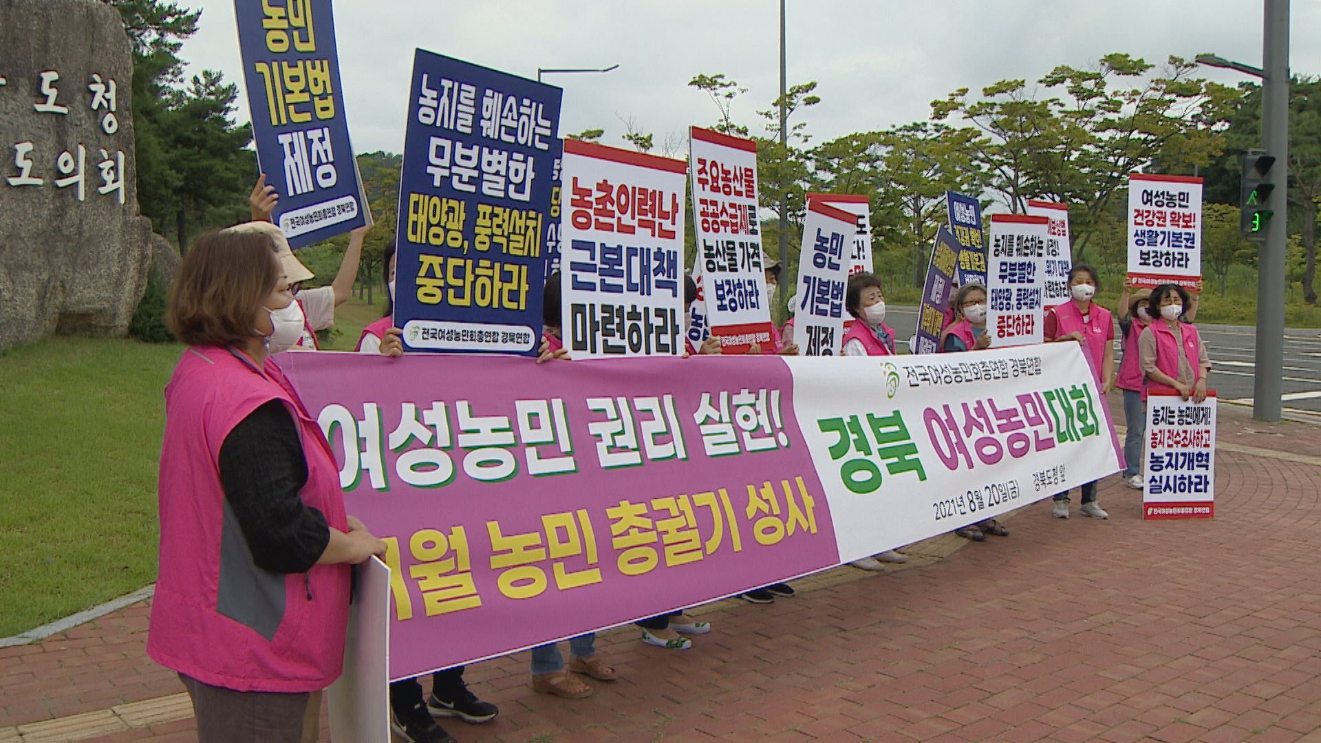 경북 지역 여성 농민들이 오늘 청 앞에서 여성농민대회를 열고 대통령선거 후보들에게 여성 농민을 위한 정책을 마련할 것을 촉구했습니다.전국여성농민회총연합 경북연합은 "여성 농민들은 농가에 없어서 안 될 존재이지만, 언제나 농업정책에서 '보조자'로만 인식되고 있다며, 여성농민 특화 건강검진을 실시하는 등 양성...