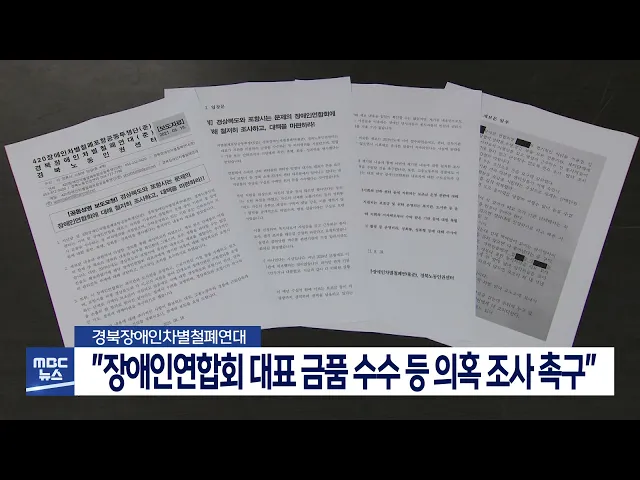 경북지역 한 장애인연합회에서 대표가 금품 수수와 직장 내 괴롭힘, 성폭력 등을 일삼았다는 의혹이 제기돼 장애인단체가 진상조사를 촉구했습니다. 경북장애인차별철폐연대 등은 성명을 내고, 경북지역 장애인연합회 대표 A씨가 연합회 소속 센터들의 센터장 임명과 직원 승급에 있어 대가성 금품을 받고, 여성 직원에게...