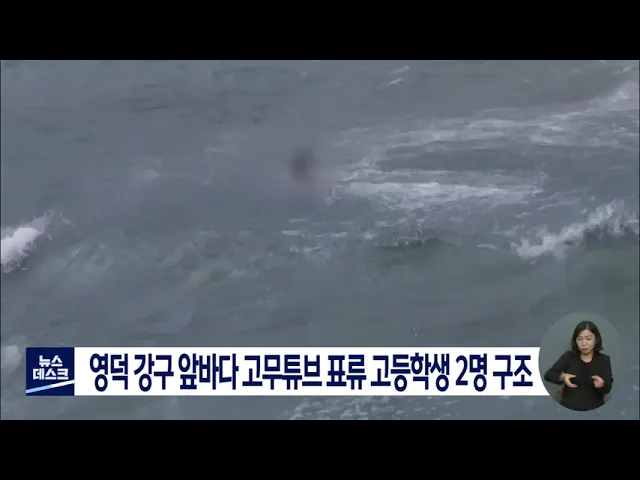 영덕 강구 앞바다 고무튜브 표류 고등학생 2명 구조