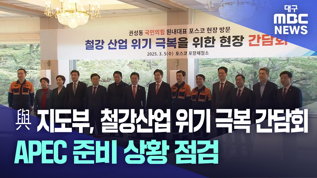 ◀앵커▶여당인 국민의힘 지도부가 3월 5일 포항과 경주를 잇달아 찾았습니다.철강산업 위기 극복을 위한 정부와 국회 차원의 지원 방안을 논의했고, 경주에서는 APEC 정상회의 준비 상황을 점검했습니다.한편 이번 친기업 행보로 더불어민주당 이재명 대표의 우클릭을 견제하려했다는 분석도 나왔습니다.김기영 기자가 보도...