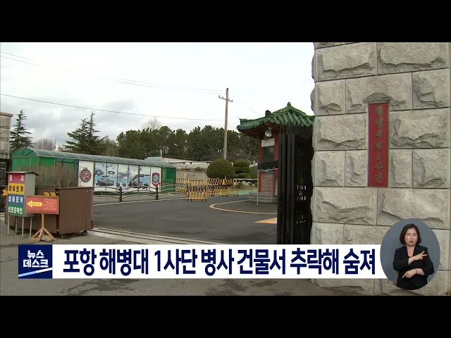 어제(3일) 오전 5시 30분쯤 포항 해병대 1사단 소속 A 일병이 부대 내 건물 4층에서 떨어져 숨졌습니다.A 일병은 병원으로 옮겨졌지만 치료를 받던 중 숨졌습니다.해병대는 부대원 등을 상대로 정확한 사고 경위를 조사하고 있습니다.