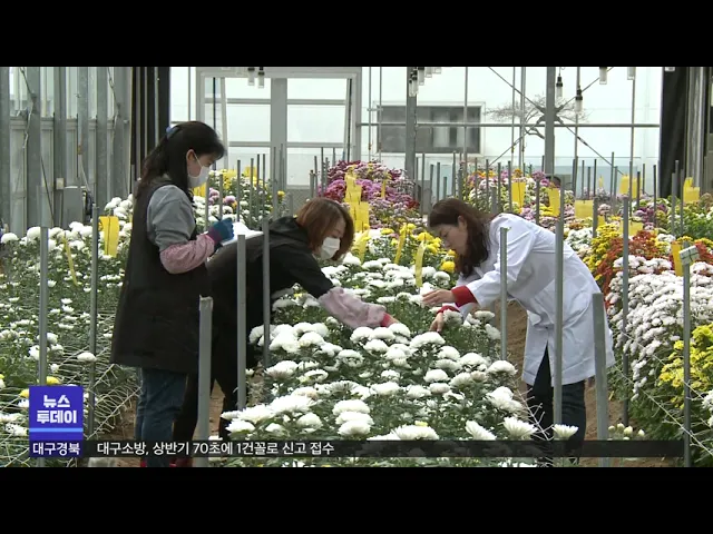 ◀앵커▶ 경조사용으로 많이 쓰이는 대형 국화는 일본 품종의 점유율이 높은데요. 국내 연구진이 품질 좋은 국산 품종을 개발해 재배면적이 확대되고 있습니다. 김건엽 기자입니다. ◀기자▶ 대형 하우스 안이 온통 흰국화로 가득합니다. 국내에서 개발된 신품종 '백강'입니다. 주로 대형 화환에 사용되는데 꽃이 크고 꽃잎 수...